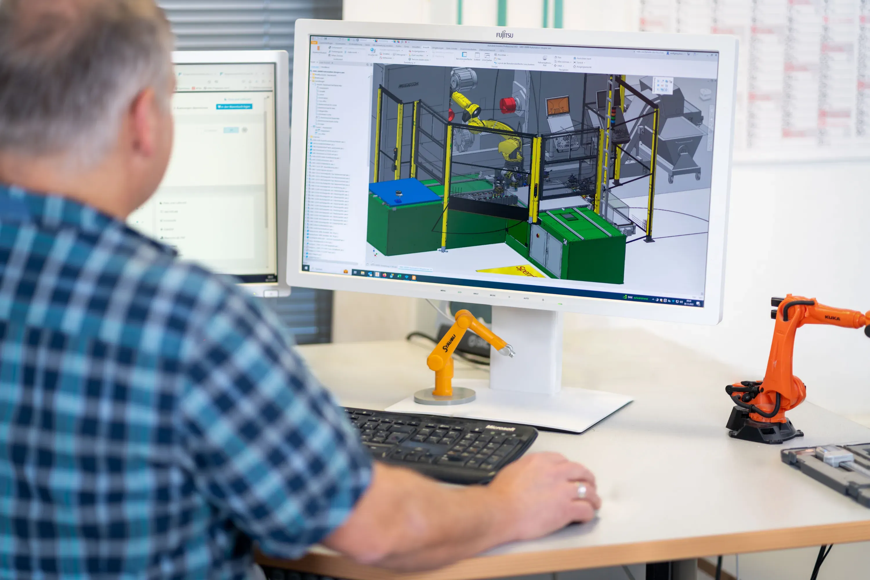 Unser Expertenteam entwickelt und baut für Sie, den Kunden, die beste Lösung zu seiner Problem- und Aufgabenstellung, prozesssicher und kosteneffizient. Hierbei können wir auf langjährige Erfahrung im Sondermaschinenbau zurückgreifen und sind in allen Bereichen bestens aufgestellt. Getreu unserer Philosophie „alles aus einer Hand“ steht uns das komplette Spektrum der Automatisierungstechnik hausintern zur Verfügung. Von der Projektierung über die elektrische und mechanische Konstruktion, Schaltschrankbau, Teilefertigung, Aufbau, Inbetriebnahme bis hin zum Aufbau vor Ort und Service.